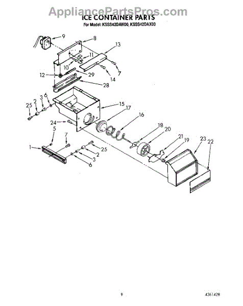 Parts for Kitchenaid KSSS42DAW00: 07 - Ice Container Parts