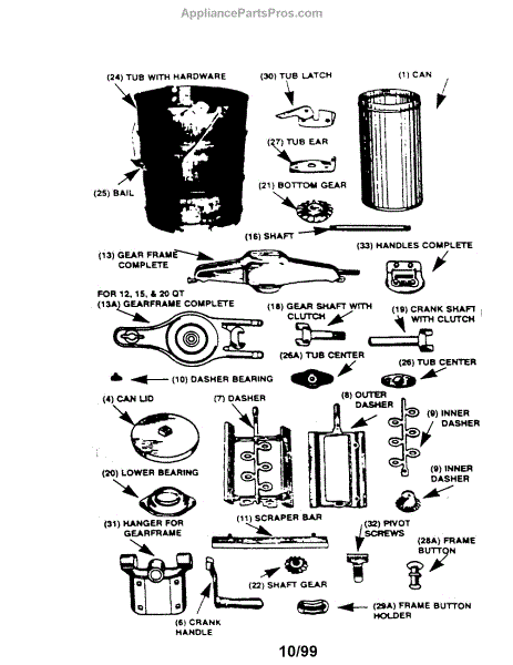Parts for Rival F64308: Ice Cream Freezer, 8 Qt. Parts