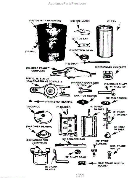 Parts for White Mountain F64304: Ice Cream Freezer, 6 Qt. Parts