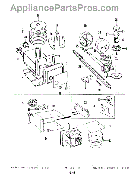 This factory screw secures appliance components to their mounting points. Replace missing, worn, or stripped hardware to restore a tight fit, proper alignment, and quieter operation across the affected assembly.