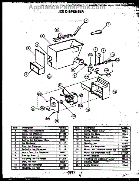 Parts for Caloric GFD240-1L2: Ice Dispenser Parts