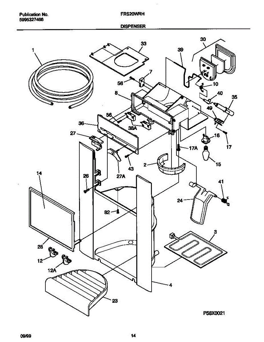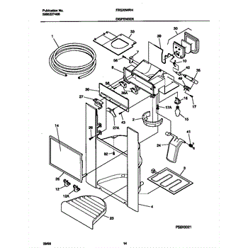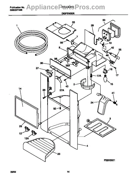 Fixes ice buildup around water dispenser spout. This throat heater prevents freezing in the dispenser area. Moderate DIY repair, 30-45 minutes.