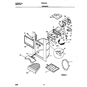Fixes ice buildup around water dispenser spout. This throat heater prevents freezing in the dispenser area. Moderate DIY repair, 30-45 minutes.