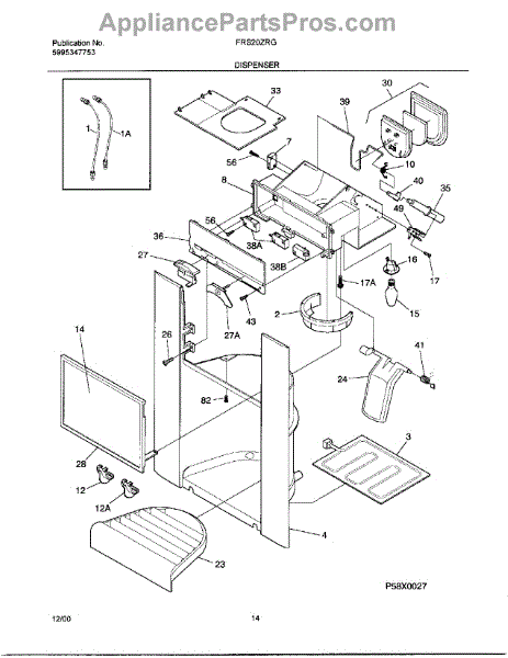 Fixes ice buildup around water dispenser spout. This throat heater prevents freezing in the dispenser area. Moderate DIY repair, 30-45 minutes.