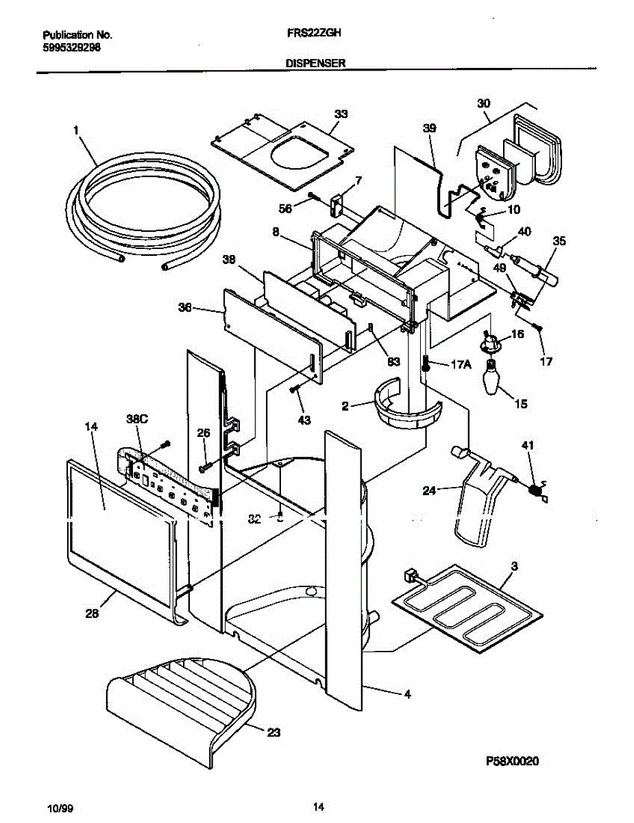 Fixes ice buildup around water dispenser spout. This throat heater prevents freezing in the dispenser area. Moderate DIY repair, 30-45 minutes.