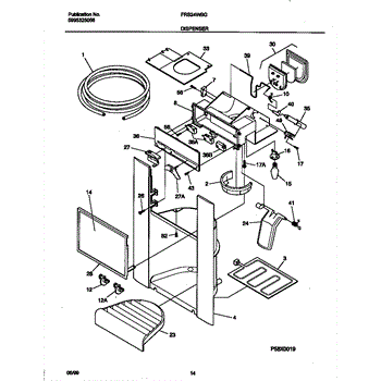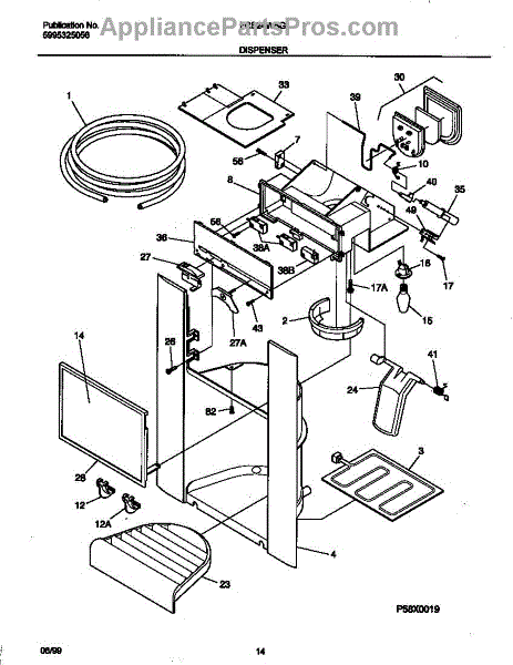 Fixes ice buildup around water dispenser spout. This throat heater prevents freezing in the dispenser area. Moderate DIY repair, 30-45 minutes.