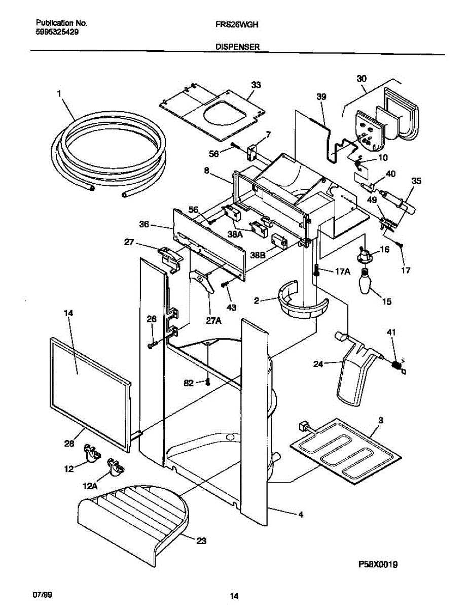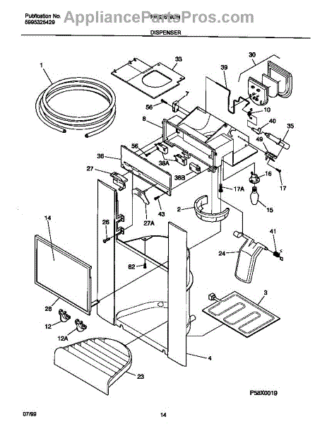 Fixes ice buildup around water dispenser spout. This throat heater prevents freezing in the dispenser area. Moderate DIY repair, 30-45 minutes.