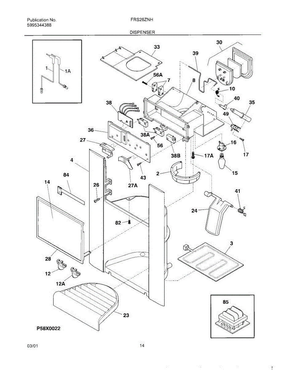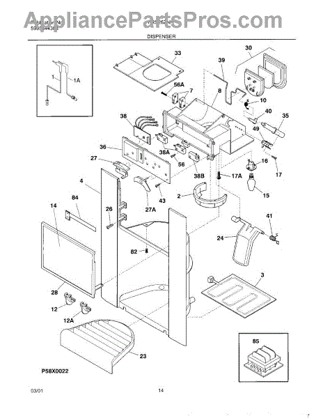 Fixes ice buildup around water dispenser spout. This throat heater prevents freezing in the dispenser area. Moderate DIY repair, 30-45 minutes.