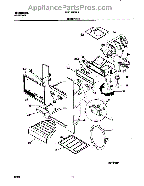 Fix ice or water dispenser that won't turn off or activate properly. This dispenser switch restores control panel function. Moderate DIY repair.