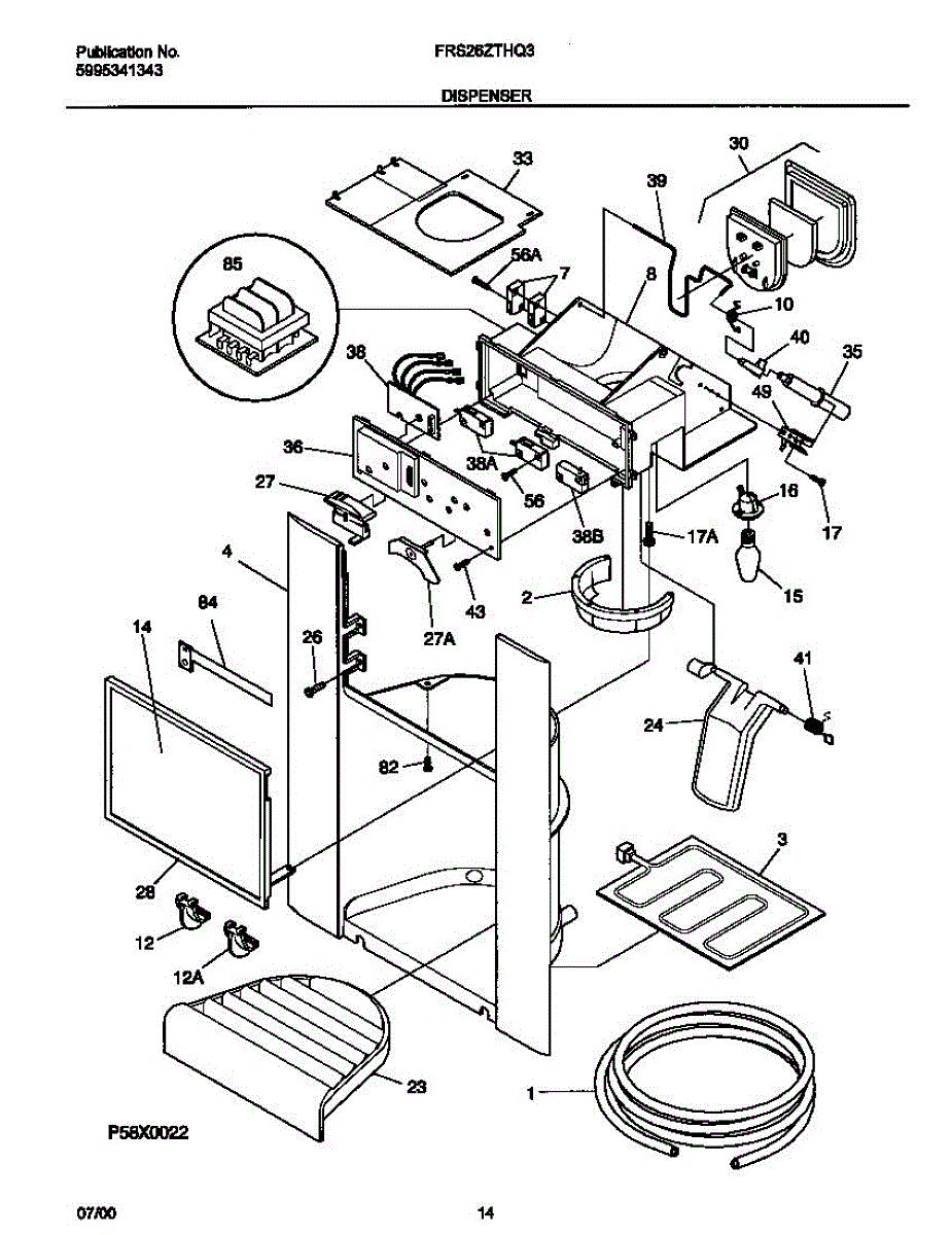 Fixes ice buildup around water dispenser spout. This throat heater prevents freezing in the dispenser area. Moderate DIY repair, 30-45 minutes.
