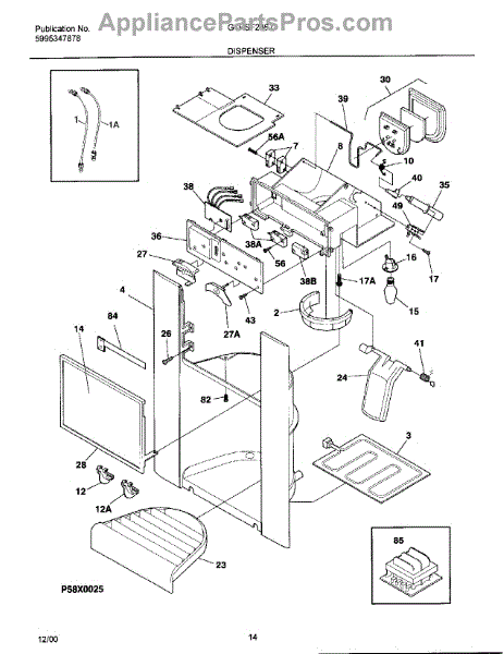 The Dispenser Switch is an OEM replacement part for Frigidaire refrigerators. It is a component that controls the operation of the water and ice dispenser, allowing users to conveniently access chilled water, cubed ice, or crushed ice from the refrigerator door.