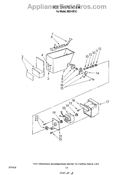 Parts for Whirlpool 8624W1C: 14 - Ice Dispenser Parts
