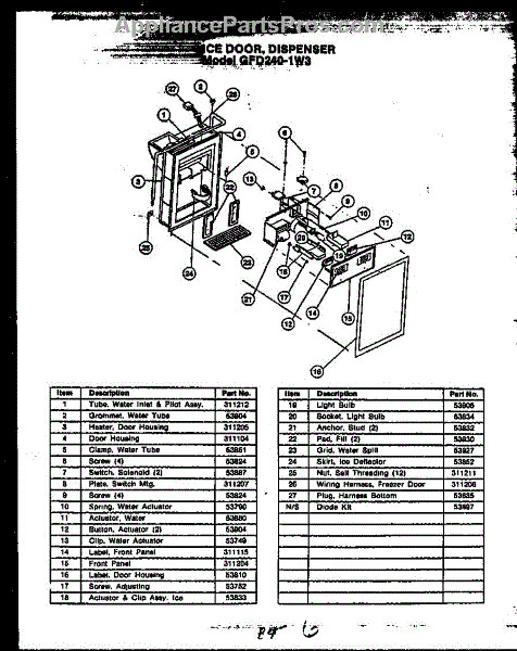 Parts for Caloric GFD240-1L3: Ice Door Parts