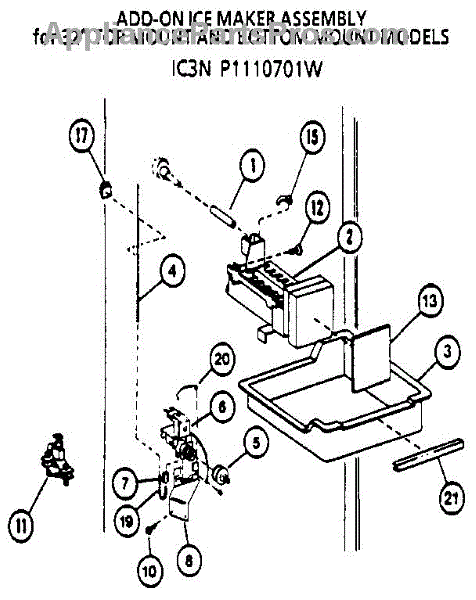 Parts for Amana 85378-P1117202W: Icemaker- Ic3n P1110701w Parts
