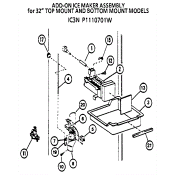 Parts for Amana 85381-P1117203W: Icemaker- Ic3n P1110701w Parts