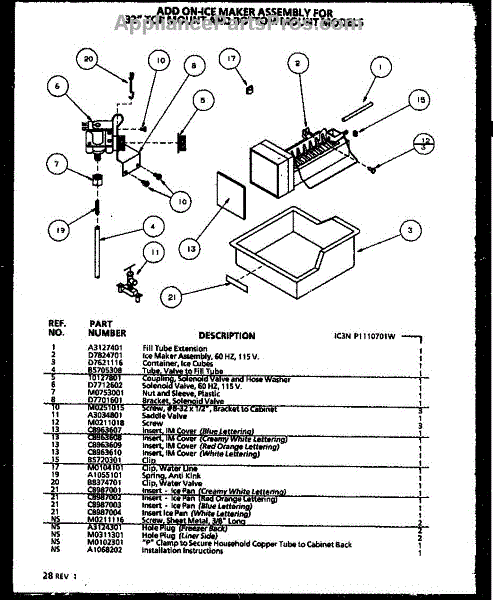 Parts for Amana 85378L-P1117202WL: Icemaker Parts