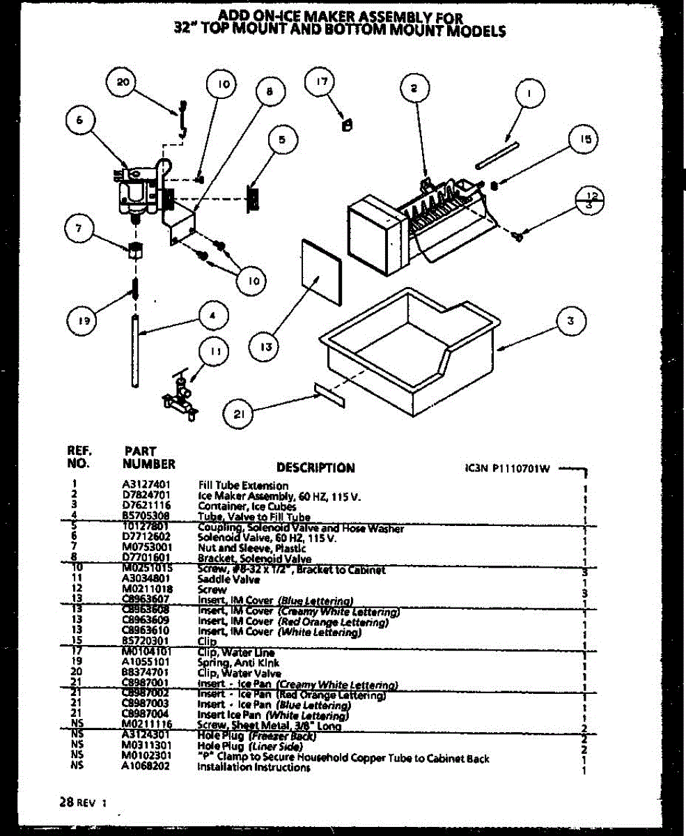 Parts for Amana 85971W-P1117002WW: Icemaker Parts