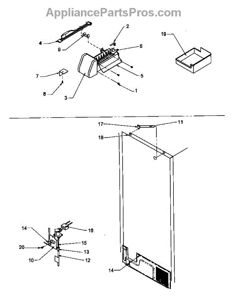 Parts for Amana TYI21S4L-P1194705WL: Ice Maker Assembly (Th21s3l / P1195604wl) (Th21s3l / P1195606wl) (Th21s3w / P1195606ww) (Thi21s3l / P1194704wl) (Thi21s3l / P1194706wl) (Thi21s3l / P1194708wl) (Thi21s3w / P1194704ww) (Thi21s3w / P1194706ww) (Thi21s3w / P1194708ww) (Tyi21s4l / P1194705wl) (Tyi21s4l / P1194707w Parts