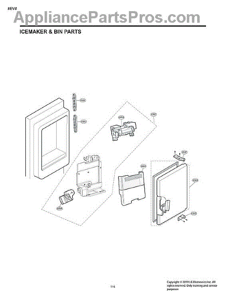 This is an ice bucket assembly that is used on refrigerator and freezer units. This part stores the ice that has been made so that it can be dispensed. The auger is attached to this, which is the piece that moves the ice into the dispenser chute. Additional parts may also be included with this component.Over time, the bucket assembly may begin to crack or break. This can happen due to exposure to extreme temperatures over time. If this is the case, it will need to be replaced. If the auger itself is no longer working, the whole ice bucket assembly will need to be replaced because it is attached. Wear work gloves when replacing this part.This ice bucket is compatible with refrigerator and freezer units that have been manufactured by Kenmore Elite and LG. It is sold individually. This part is sourced straight from the manufacturer.