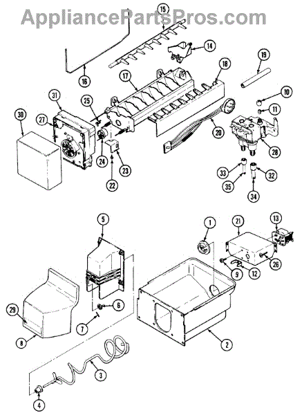 Fixes ice dispenser not dispensing or auger not turning. This motor assembly drives the auger shaft that moves ice from bin to chute. Moderate difficulty.
