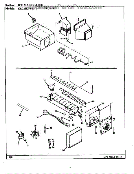 Parts for Maytag KRC22KN3W2/AP37A: Ice Maker & Bin Parts
