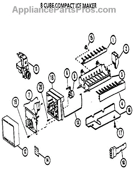 Parts for Amana 85171-P1117102W: Icemaker Compact 8 Parts