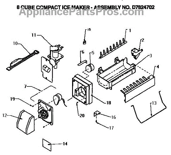 Parts for Amana TSI18R2-P1182102W: Icemaker Compact Parts