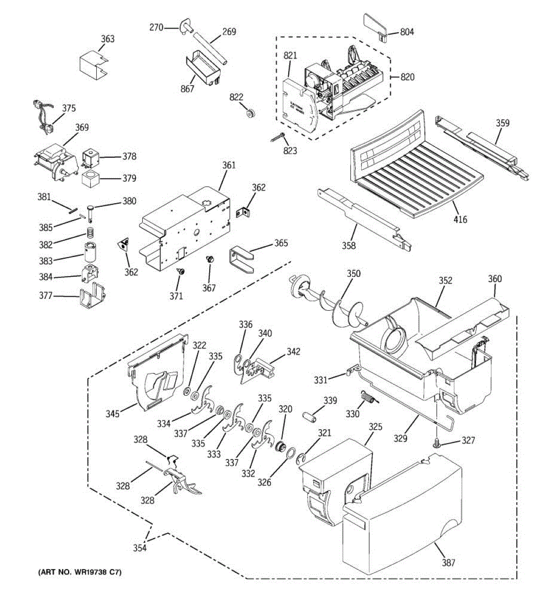 Holds and delivers ice from freezer to dispenser chute. Replace if cracked, broken, or missing. Molded design ensures clean ice storage and release.
