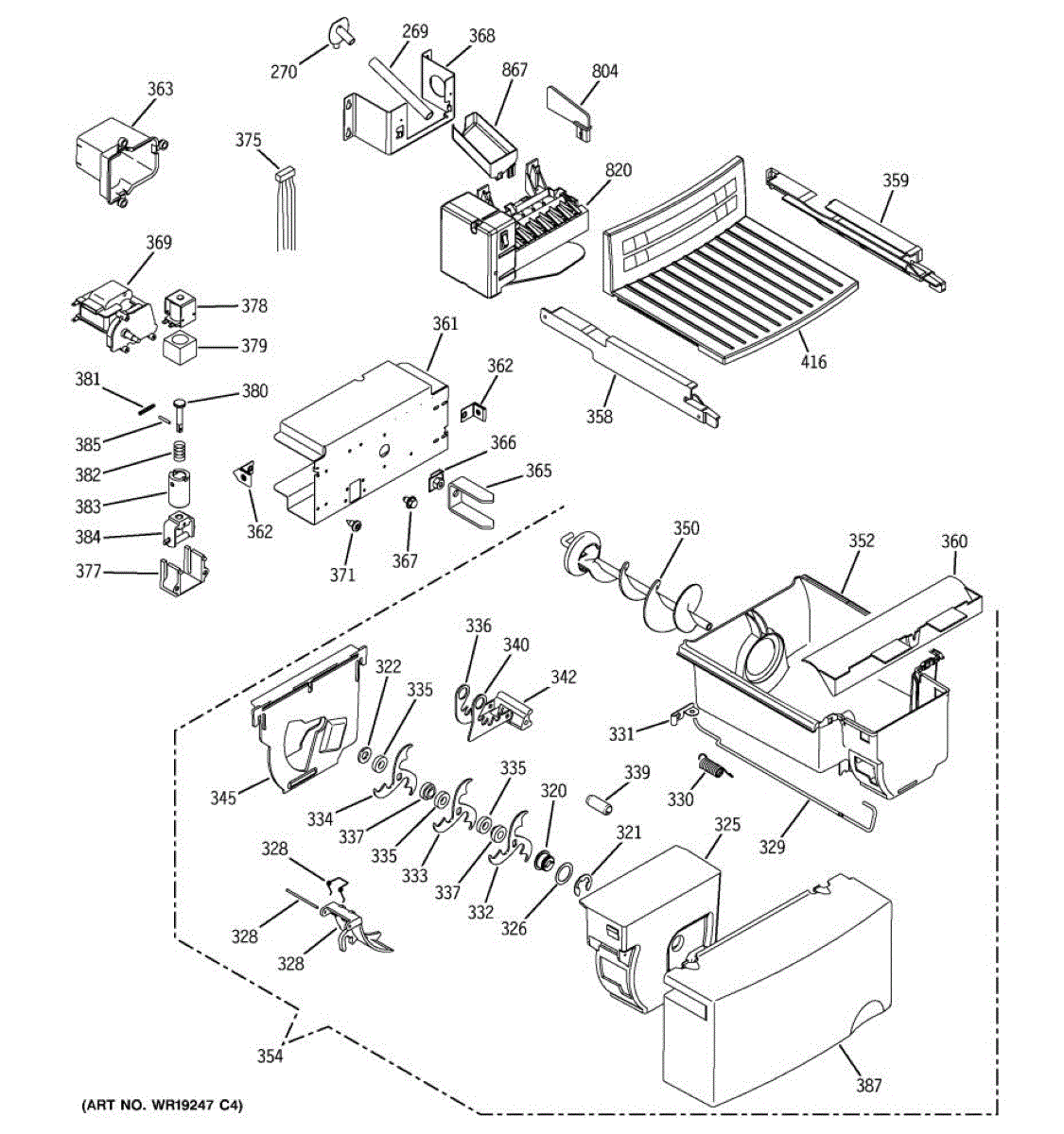 Holds and delivers ice from freezer to dispenser chute. Replace if cracked, broken, or missing. Molded design ensures clean ice storage and release.