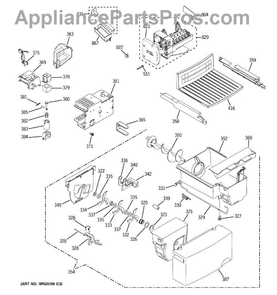 The Refrigerator Bucket and Auger Assembly is an OEM part for GE refrigerators. It is responsible for storing ice and dispensing it through the refrigerator's ice maker. The auger, which is part of this assembly, rotates to push ice forward and dispense it when activated. This assembly ensures a consistent supply of ice and smooth dispensing operation.