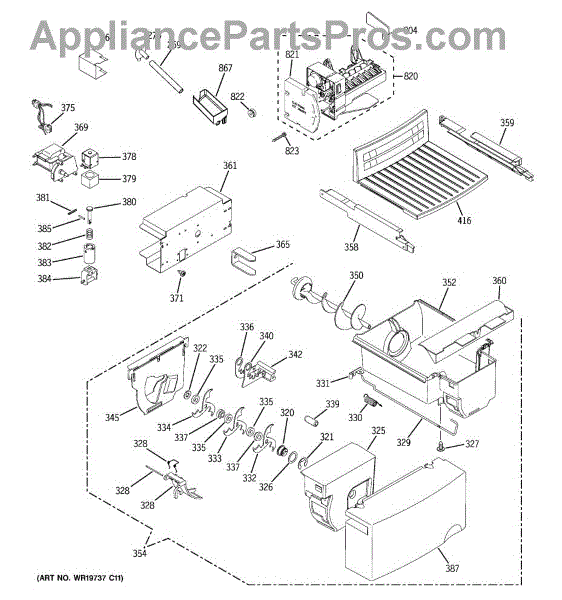 The Ice Crusher Housing is an OEM part for GE refrigerators. This part provies a protective enclosure that ensures the ice is crushed efficiently and safely before being dispensed.