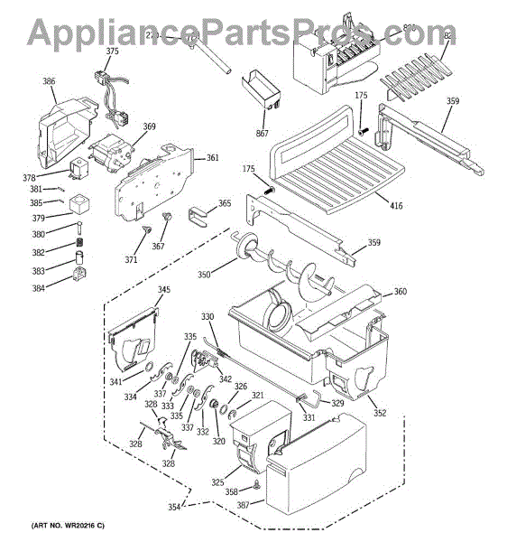 The Ice Bucket and Auger Assembly is an OEM replacement part for GE refrigerators. It consists of an ice storage bucket and an automatic ice-making auger. Together, these parts facilitate reliable ice harvesting, storage, and dispensing. Causes of a bad ice bucket and auger assembly can include damaged auger parts from jamming, worn gears preventing smooth rotation, or cracked ice storage infrastructure inhibiting ice retention and dispensing accuracy. Symptoms of a bad ice bucket and auger assembly include: