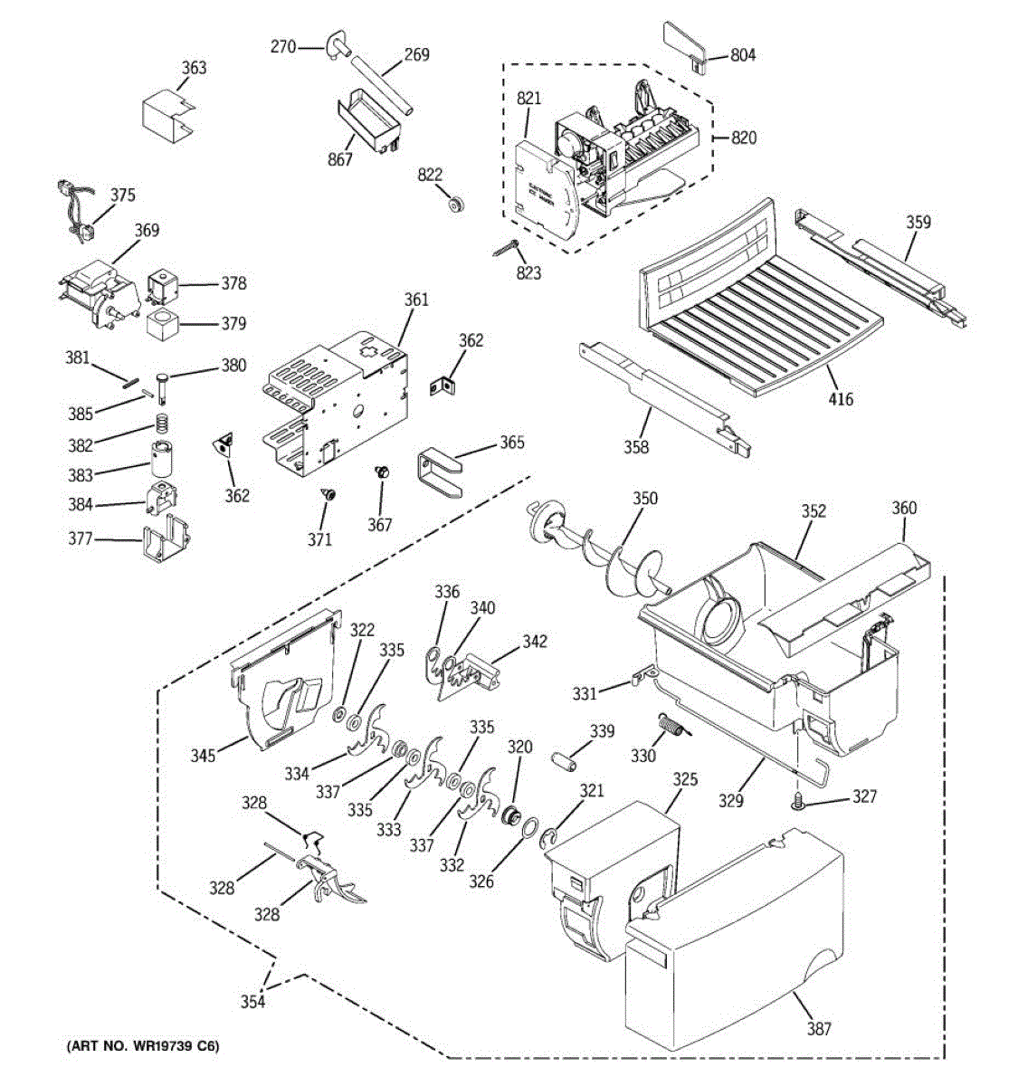 Holds and delivers ice from freezer to dispenser chute. Replace if cracked, broken, or missing. Molded design ensures clean ice storage and release.