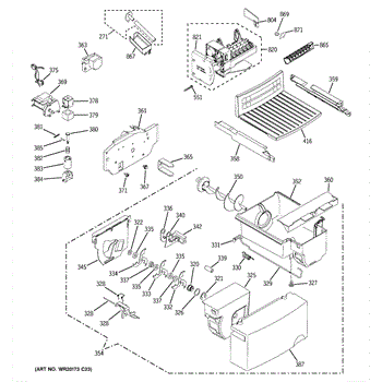 The Refrigerator Bucket and Auger Assembly is an OEM part for GE refrigerators. It is responsible for storing ice and dispensing it through the refrigerator's ice maker. The auger, which is part of this assembly, rotates to push ice forward and dispense it when activated. This assembly ensures a consistent supply of ice and smooth dispensing operation.