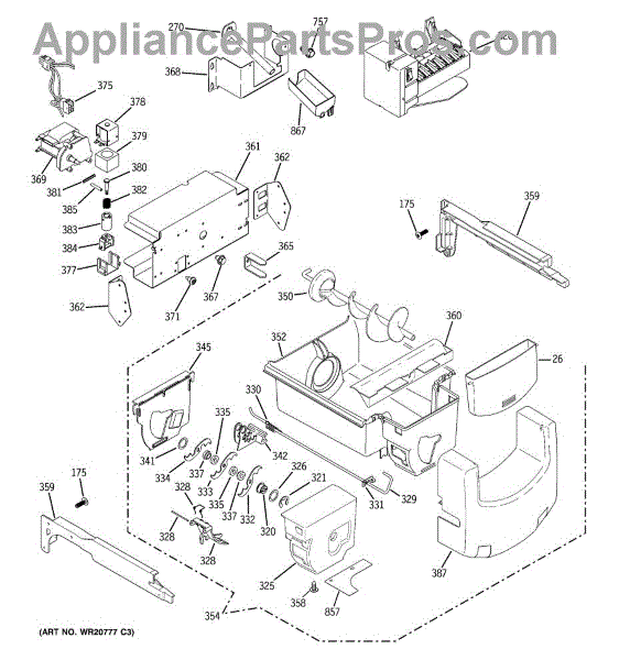 The Bucket Auger is an OEM replacement part for GE refrigerators. It is located inside the ice bucket and is responsible for moving ice from the storage compartment to the dispenser chute when you select ice dispensing. The auger rotates to transport ice cubes or crushed ice to the dispenser, ensuring smooth and efficient operation.