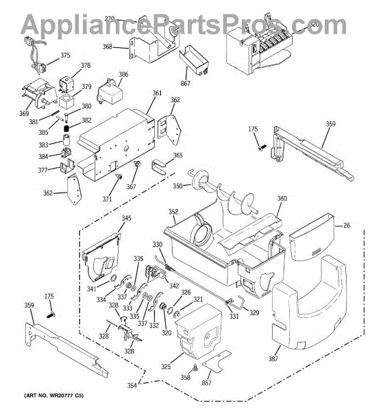 The Bucket Auger is an OEM replacement part for GE refrigerators. It is located inside the ice bucket and is responsible for moving ice from the storage compartment to the dispenser chute when you select ice dispensing. The auger rotates to transport ice cubes or crushed ice to the dispenser, ensuring smooth and efficient operation.