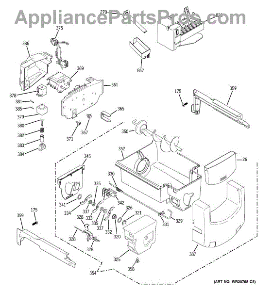 The Ice Bucket & Auger is an OEM replacement part for GE refrigerators. This assembly includes both the ice bucket and the auger, which work together to store and dispense ice. The ice bucket holds the ice, while the auger moves the ice from the bucket to the dispenser when you request ice from the refrigerator's front panel. Symptoms of a bad Ice Bucket & Auger include: