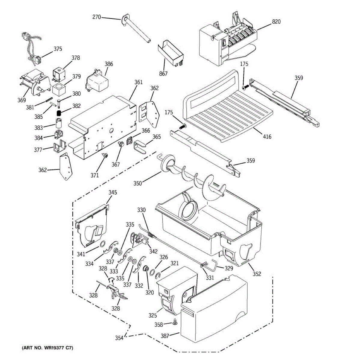 The Bucket Auger is an OEM replacement part for GE refrigerators. It is located inside the ice bucket and is responsible for moving ice from the storage compartment to the dispenser chute when you select ice dispensing. The auger rotates to transport ice cubes or crushed ice to the dispenser, ensuring smooth and efficient operation.