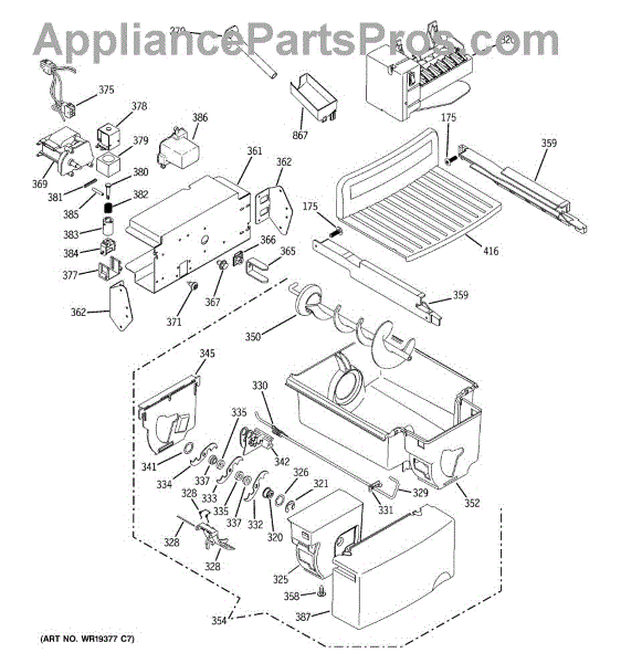 The Bucket Auger is an OEM replacement part for GE refrigerators. It is located inside the ice bucket and is responsible for moving ice from the storage compartment to the dispenser chute when you select ice dispensing. The auger rotates to transport ice cubes or crushed ice to the dispenser, ensuring smooth and efficient operation.