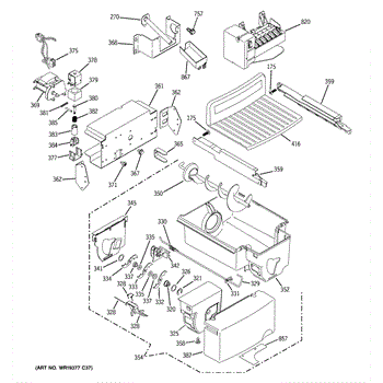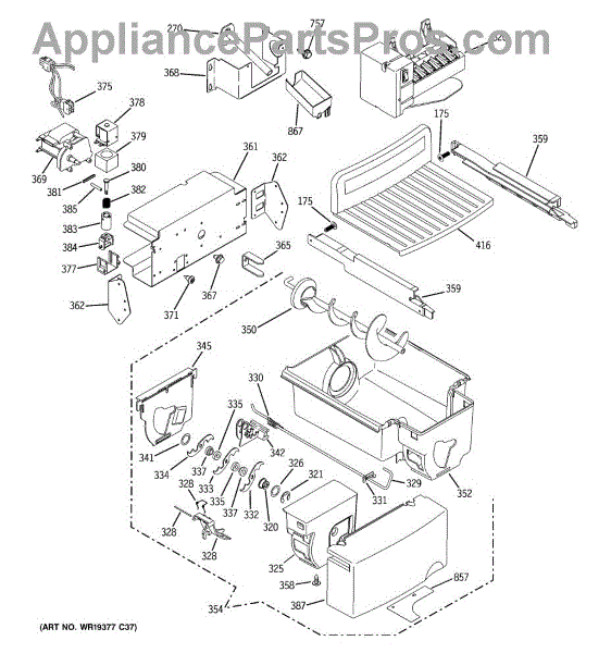 The Bucket Auger is an OEM replacement part for GE refrigerators. It is located inside the ice bucket and is responsible for moving ice from the storage compartment to the dispenser chute when you select ice dispensing. The auger rotates to transport ice cubes or crushed ice to the dispenser, ensuring smooth and efficient operation.