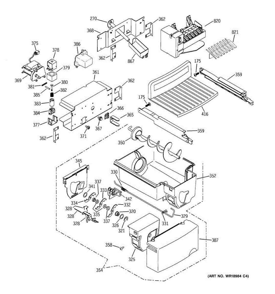 This ice bucket & auger assembly stores ice and uses an internal auger to move cubes to the dispenser. Replace a cracked bin or stripped auger to restore consistent, reliable ice dispensing performance.