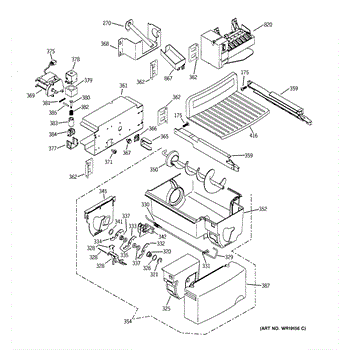The Ice Bucket and Auger Assembly is an OEM replacement part for GE refrigerators. It consists of an ice storage bucket and an automatic ice-making auger. Together, these parts facilitate reliable ice harvesting, storage, and dispensing. Causes of a bad ice bucket and auger assembly can include damaged auger parts from jamming, worn gears preventing smooth rotation, or cracked ice storage infrastructure inhibiting ice retention and dispensing accuracy. Symptoms of a bad ice bucket and auger assembly include: