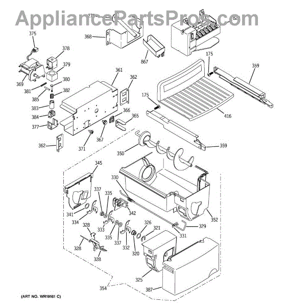 The Ice Bucket and Auger Assembly is an OEM replacement part for GE refrigerators. It consists of an ice storage bucket and an automatic ice-making auger. Together, these parts facilitate reliable ice harvesting, storage, and dispensing. Causes of a bad ice bucket and auger assembly can include damaged auger parts from jamming, worn gears preventing smooth rotation, or cracked ice storage infrastructure inhibiting ice retention and dispensing accuracy. Symptoms of a bad ice bucket and auger assembly include: