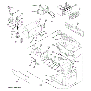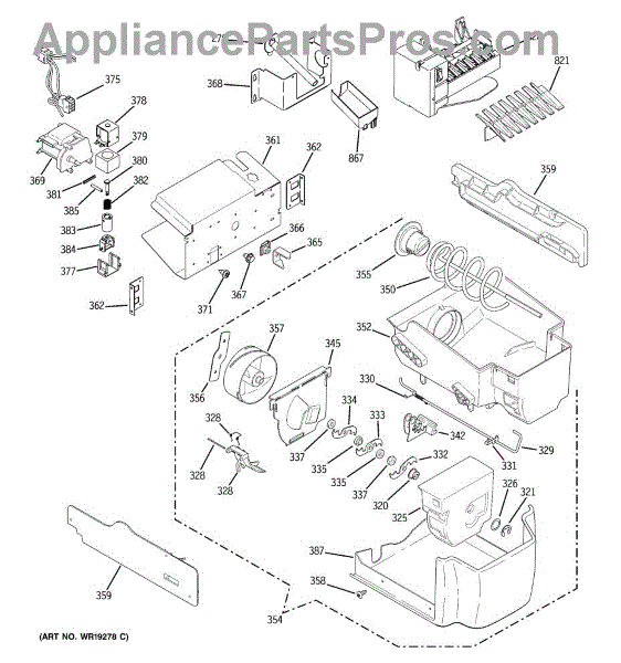 Stores ice in the freezer and drives it to the dispenser chute. Replace this assembly when the bucket is cracked, the auger is worn, or ice won't dispense.