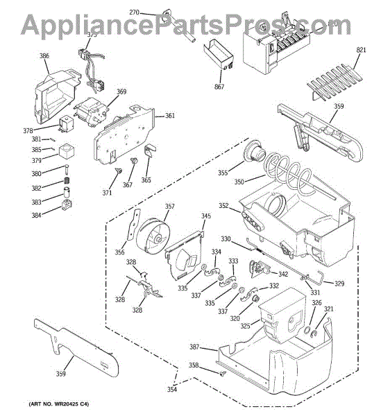 This helix is the plastic spiral inside the refrigerator's ice bucket that works with the auger to move ice toward the crusher and dispenser. Replacing a worn or broken helix restores smooth ice dispensing and reduces jams.