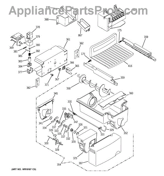 The Ice Bucket and Auger Assembly is an OEM replacement part for GE refrigerators. It consists of an ice storage bucket and an automatic ice-making auger. Together, these parts facilitate reliable ice harvesting, storage, and dispensing. Causes of a bad ice bucket and auger assembly can include damaged auger parts from jamming, worn gears preventing smooth rotation, or cracked ice storage infrastructure inhibiting ice retention and dispensing accuracy. Symptoms of a bad ice bucket and auger assembly include: