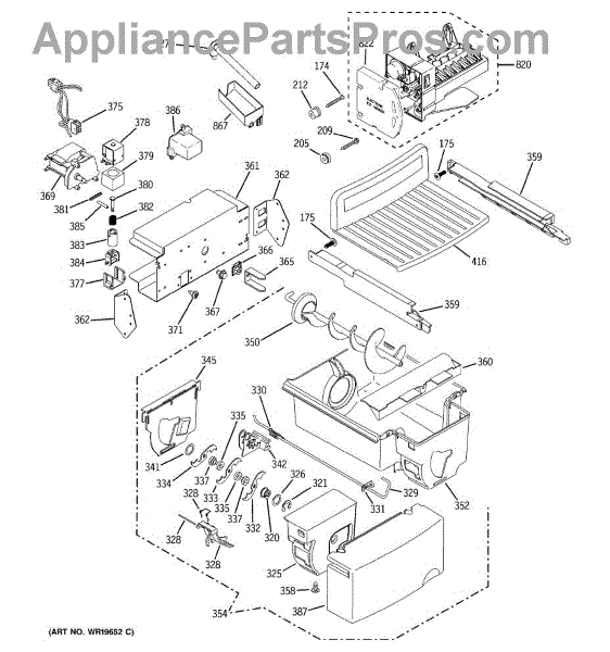The Ice Bucket and Auger Assembly is an OEM replacement part for GE refrigerators. It consists of an ice storage bucket and an automatic ice-making auger. Together, these parts facilitate reliable ice harvesting, storage, and dispensing. Causes of a bad ice bucket and auger assembly can include damaged auger parts from jamming, worn gears preventing smooth rotation, or cracked ice storage infrastructure inhibiting ice retention and dispensing accuracy. Symptoms of a bad ice bucket and auger assembly include: