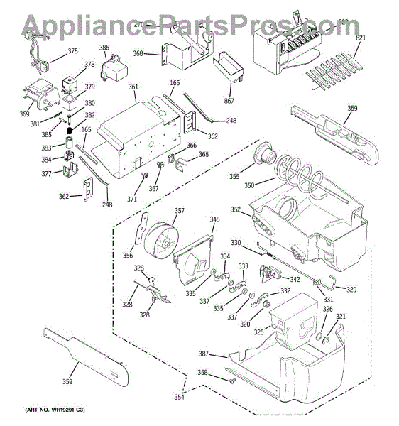 Replace a cracked or jammed ice bin with this bucket and auger assembly. It stores the ice and uses the auger to move it toward the dispenser chute, restoring smooth, reliable through-the-door ice dispensing.