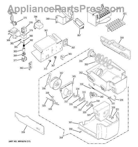 Replace a cracked or jammed ice bin with this bucket and auger assembly. It stores the ice and uses the auger to move it toward the dispenser chute, restoring smooth, reliable through-the-door ice dispensing.