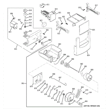 This armature kit is the moving plunger and linkage operated by the dispenser solenoid. It opens and closes the ice chute door during dispensing and helps it seal when idle to reduce frost and warm-air leaks.